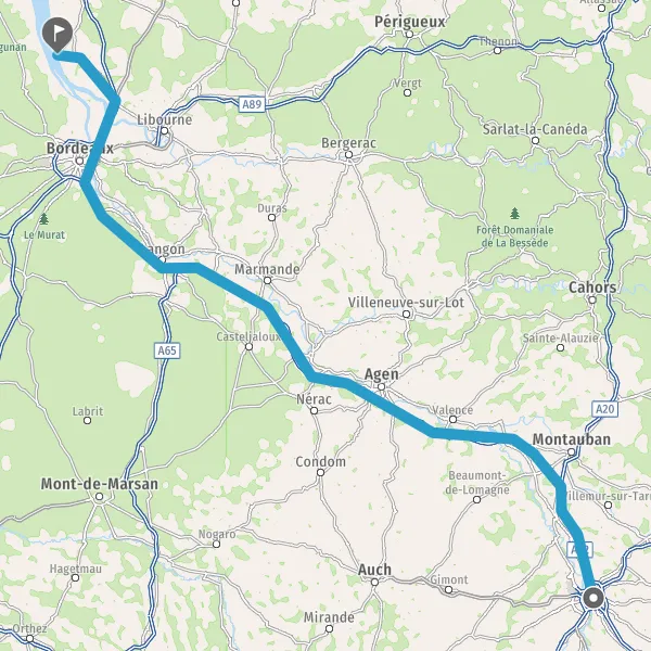 Prendre à droite et rejoindre A62. Continuer sur 33 kilomètres