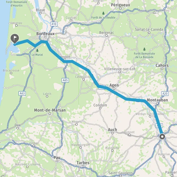 Prendre à droite et rejoindre A62. Continuer sur 33 kilomètres