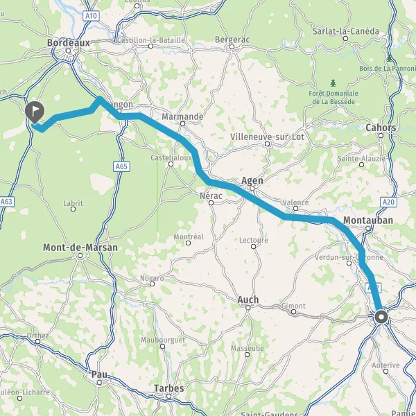 Prendre à droite et rejoindre A62. Continuer sur 33 kilomètres