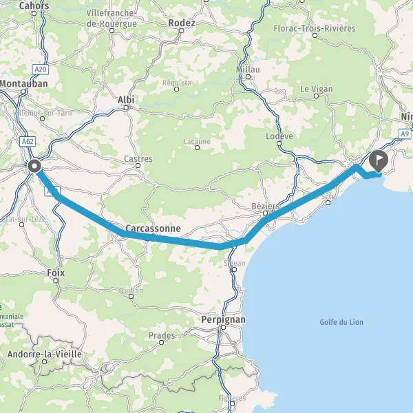 Continuer et rejoindre A9 E15 E80. Continuer sur 84 kilomètres