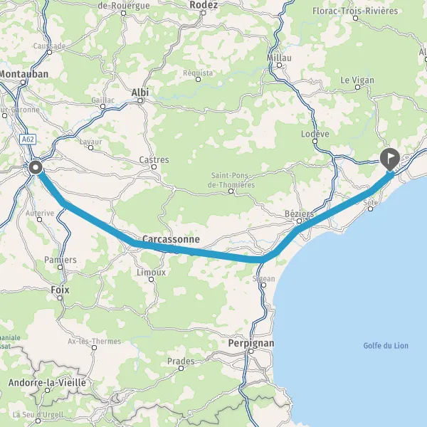 Continuer et rejoindre A9 E15 E80. Continuer sur 84 kilomètres