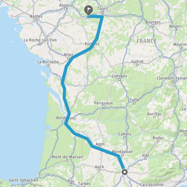 Prendre à droite et rejoindre A62. Continuer sur 33 kilomètres