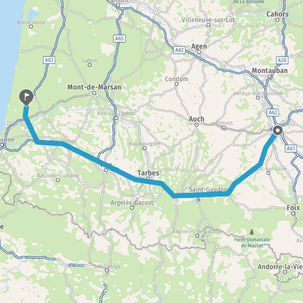 Prendre à droite et rejoindre A63 E5 E70. Continuer sur 9 kilomètres