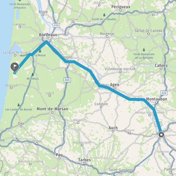 Prendre à droite et rejoindre A62. Continuer sur 33 kilomètres