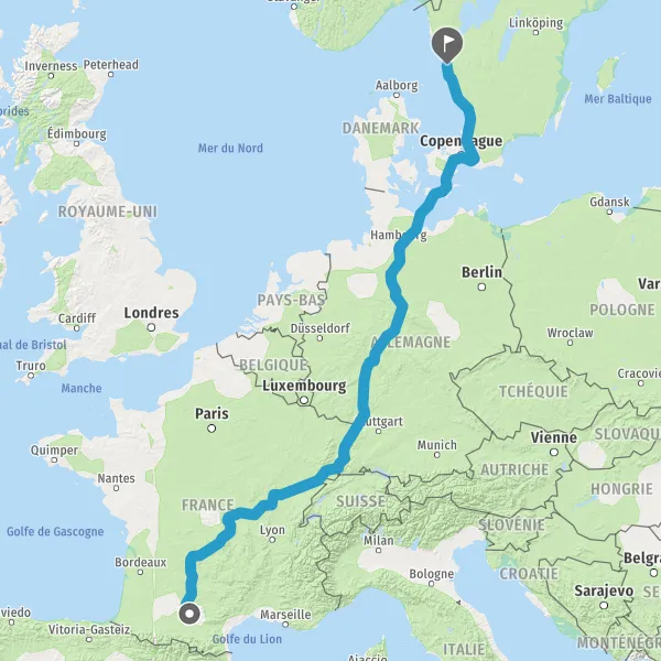 Au rond-point, prendre la 5ème sortie sur la voie et continuer sur 426 kilomètres