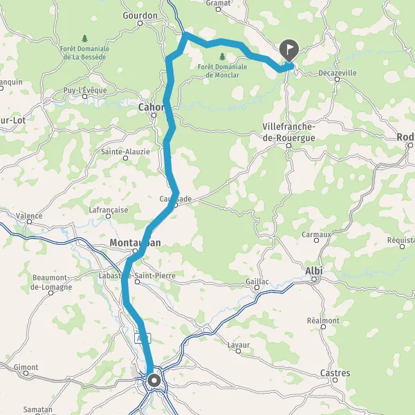 Prendre à droite et rejoindre A62. Continuer sur 33 kilomètres