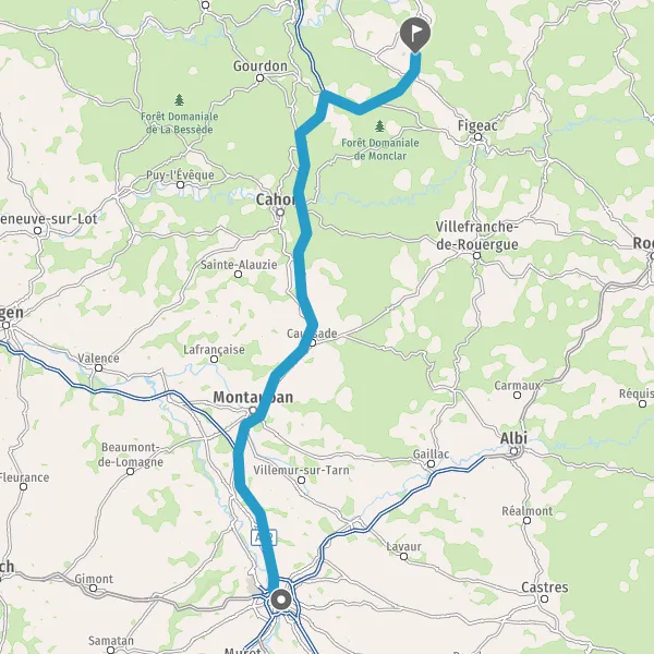 Prendre à droite et rejoindre A62. Continuer sur 33 kilomètres