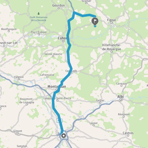 Prendre à droite et rejoindre A62. Continuer sur 33 kilomètres
