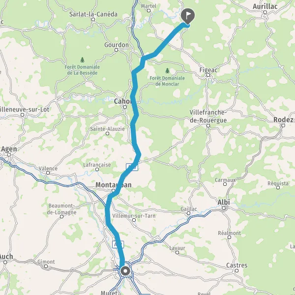 Prendre à droite et rejoindre A62. Continuer sur 33 kilomètres