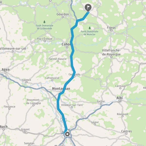 Prendre à droite et rejoindre A62. Continuer sur 33 kilomètres