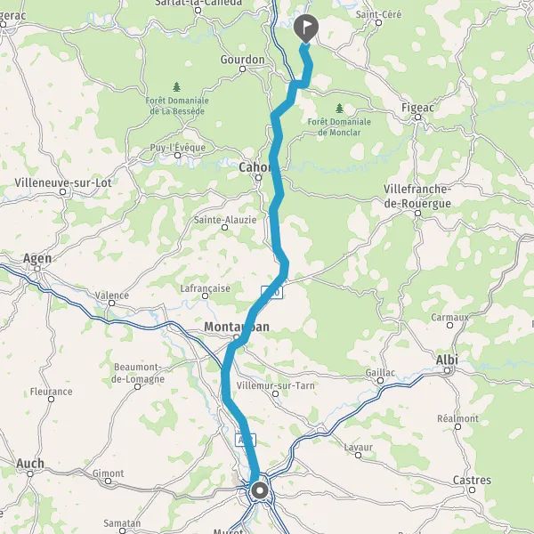Prendre à droite et rejoindre A62. Continuer sur 33 kilomètres