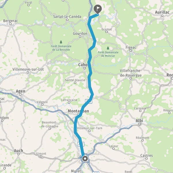 Prendre à droite et rejoindre A62. Continuer sur 33 kilomètres