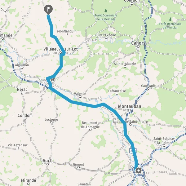 Prendre à droite et rejoindre A62. Continuer sur 33 kilomètres