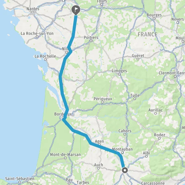 Prendre à droite et rejoindre A62. Continuer sur 33 kilomètres