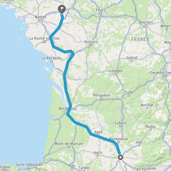Prendre à droite et rejoindre A62. Continuer sur 33 kilomètres