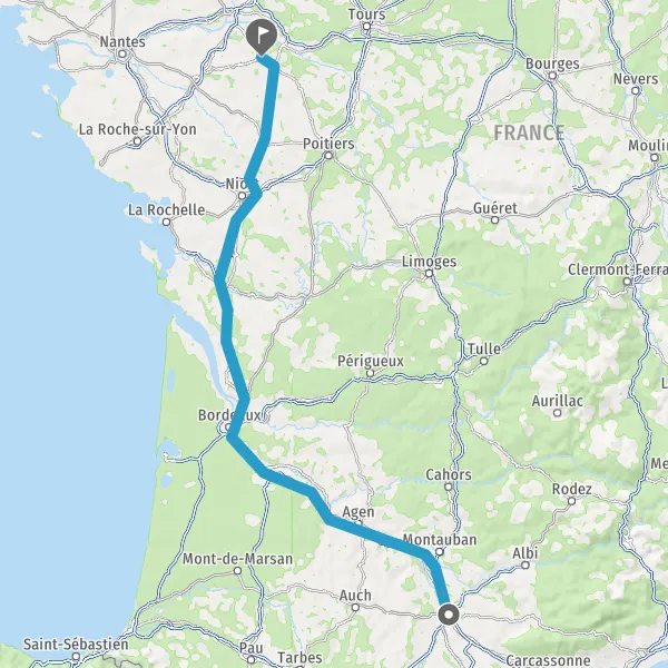 Prendre à droite et rejoindre A62. Continuer sur 33 kilomètres