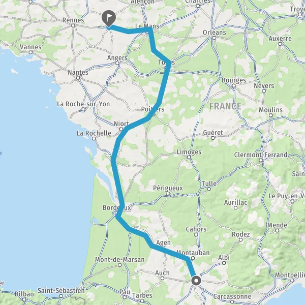 Prendre à droite et rejoindre A62. Continuer sur 33 kilomètres