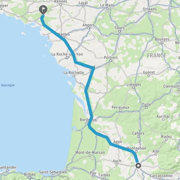 Prendre à droite et rejoindre A83. Continuer sur 150 kilomètres