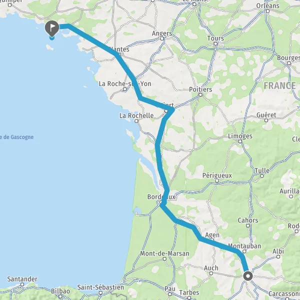 Prendre à droite et rejoindre A83. Continuer sur 150 kilomètres