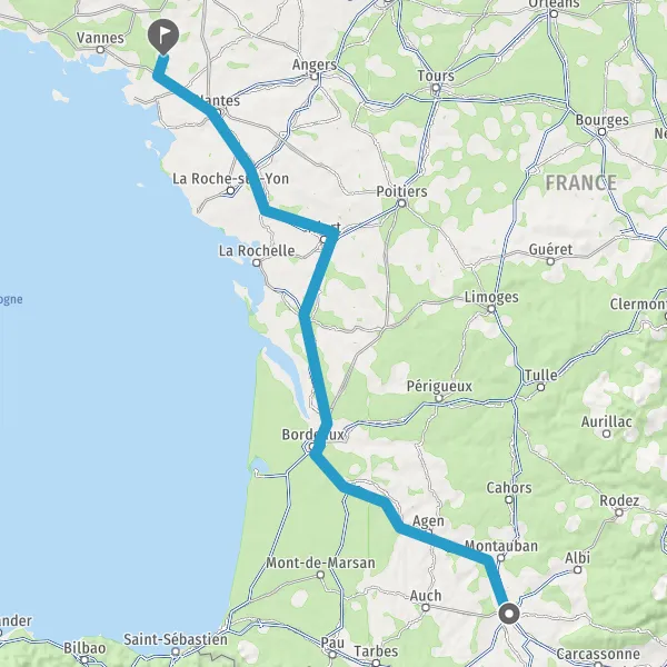 Prendre à droite et rejoindre A62. Continuer sur 33 kilomètres