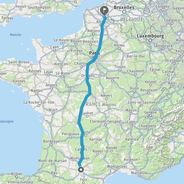 Prendre à droite et rejoindre A62. Continuer sur 33 kilomètres