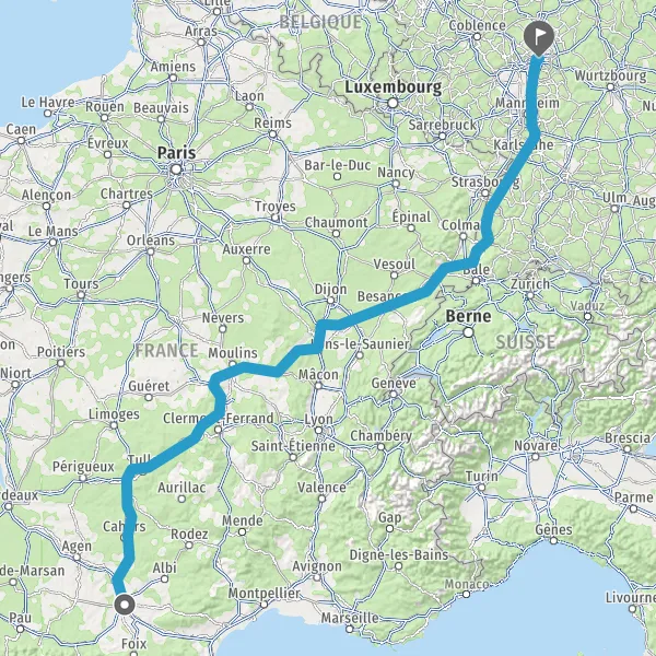 Prendre à droite et rejoindre A36. Continuer sur 165 kilomètres