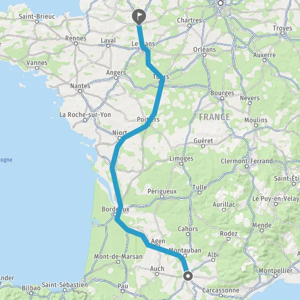 Continuer E5 (L'Aquitaine) sur 328 kilomètres