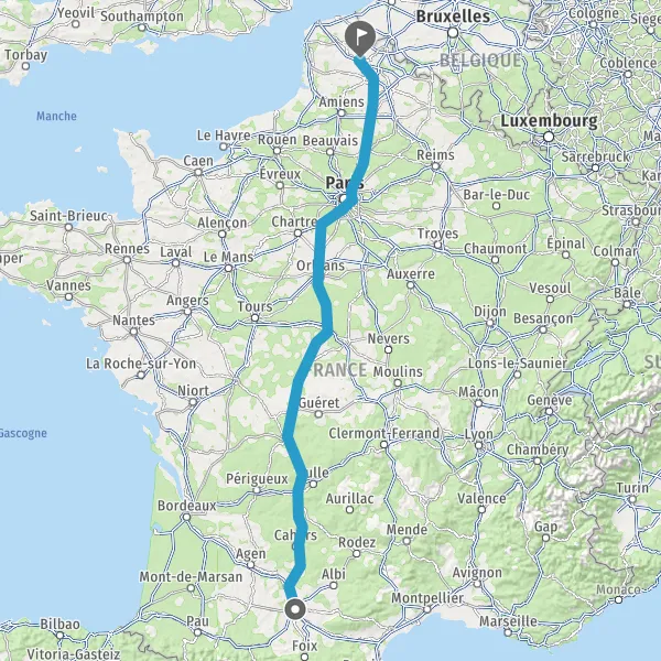 Prendre à droite et rejoindre A20 E9. Continuer sur 425 kilomètres