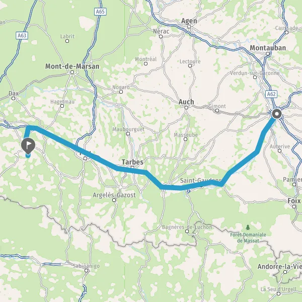 Prendre à droite et rejoindre A64 E80. Continuer sur 1,9 kilomètre