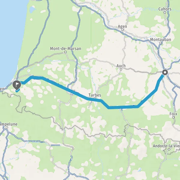 Prendre à droite et rejoindre A64 E80. Continuer sur 1,9 kilomètre