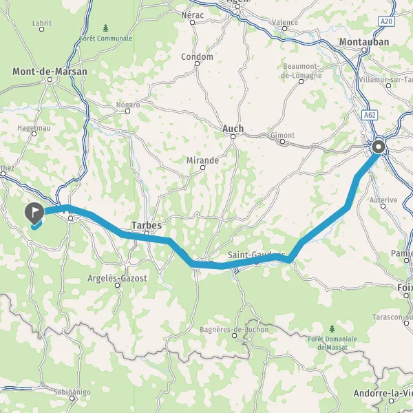 Prendre à droite et rejoindre A64 E80. Continuer sur 1,9 kilomètre
