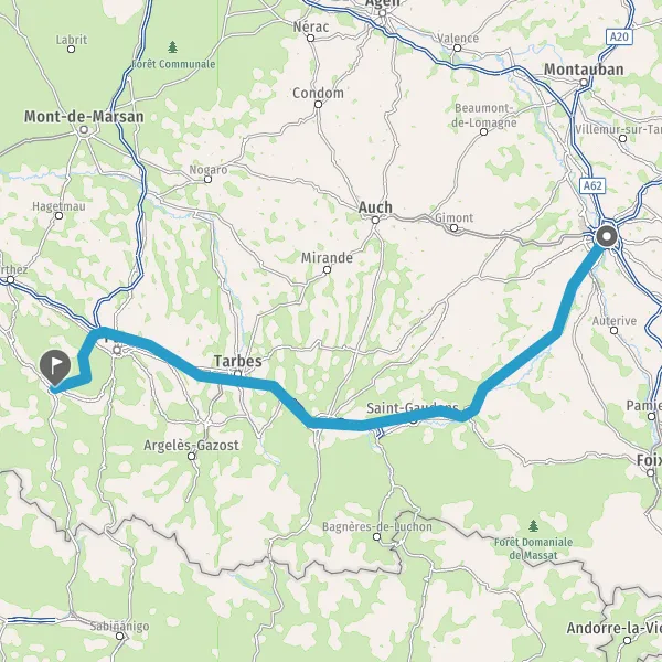 Prendre à droite et rejoindre A64 E80. Continuer sur 1,9 kilomètre
