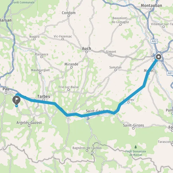Prendre à droite et rejoindre A64 E80. Continuer sur 1,9 kilomètre