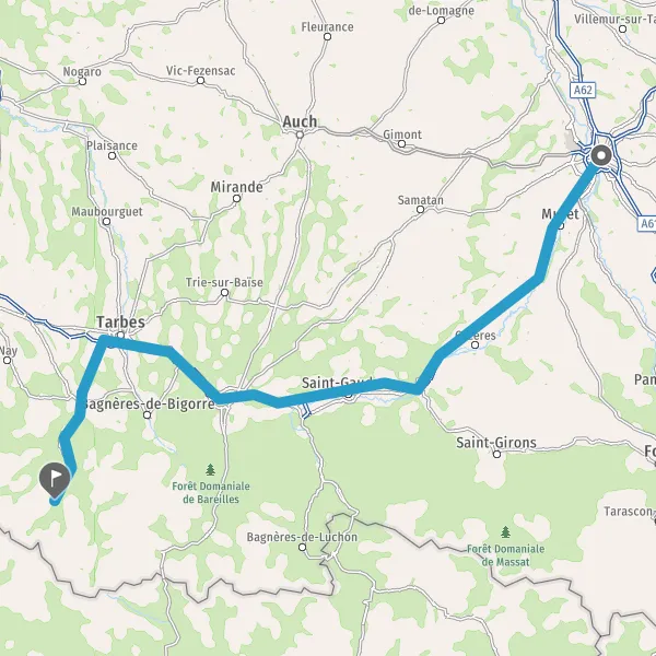 Prendre à droite et rejoindre A64 E80. Continuer sur 1,9 kilomètre