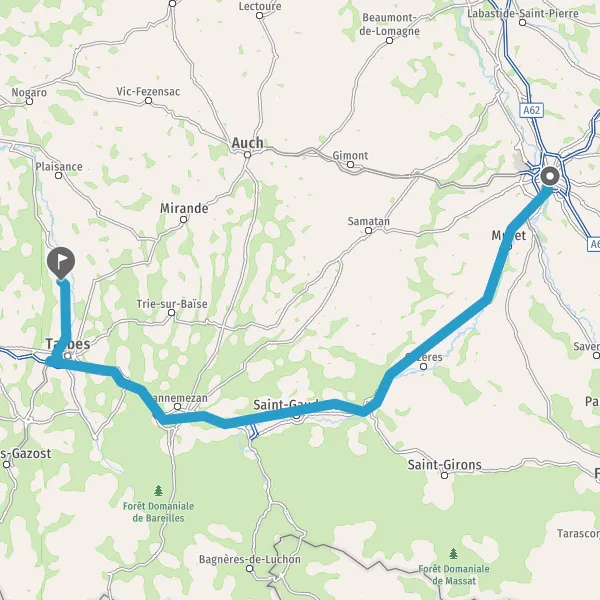 Prendre à droite et rejoindre A64 E80. Continuer sur 1,9 kilomètre
