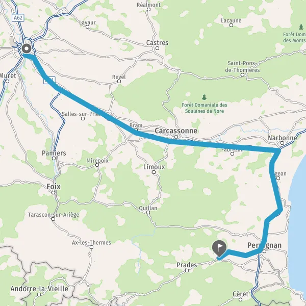 Prendre à droite et rejoindre A9 E15. Continuer sur 47 kilomètres