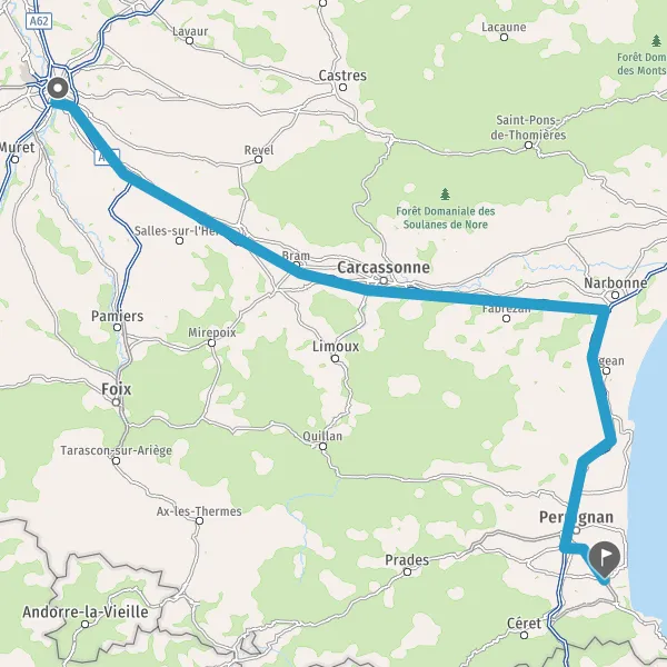 Prendre à droite et rejoindre A9 E15. Continuer sur 60 kilomètres