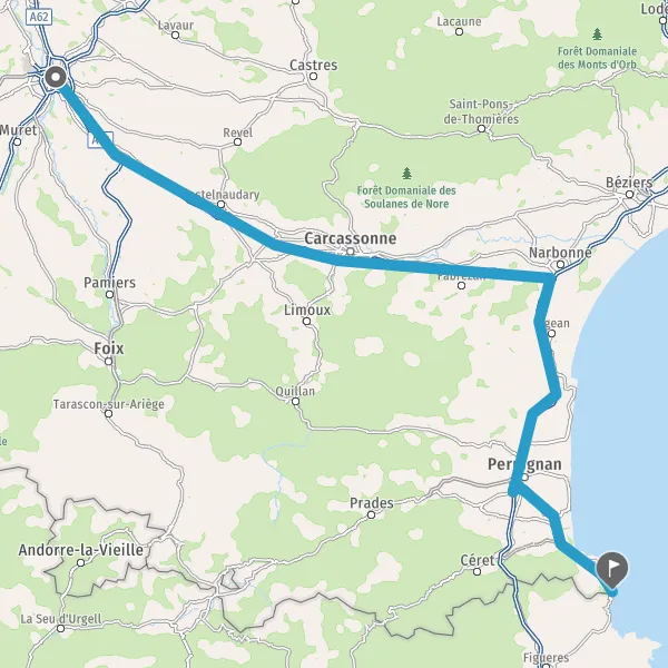 Prendre à droite et rejoindre A9 E15. Continuer sur 60 kilomètres
