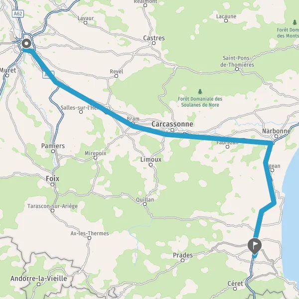 Prendre à droite et rejoindre A9 E15. Continuer sur 60 kilomètres
