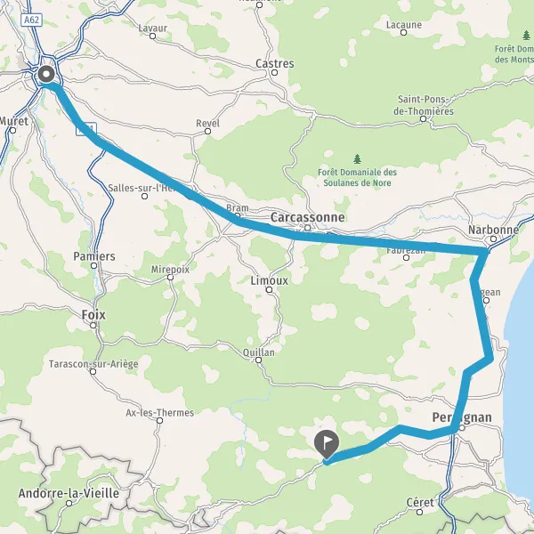 Prendre à droite et rejoindre A9 E15. Continuer sur 47 kilomètres