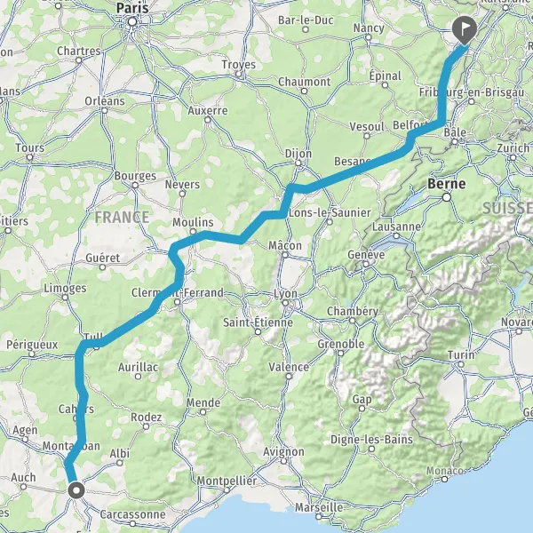 Prendre à droite et rejoindre A36. Continuer sur 225 kilomètres