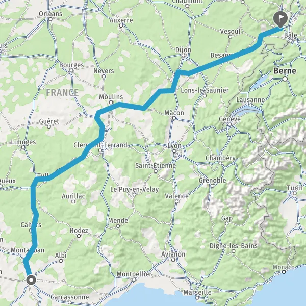 Prendre à droite et rejoindre A36. Continuer sur 221 kilomètres