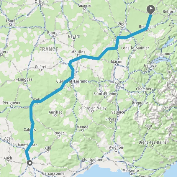 Prendre à droite et rejoindre A36. Continuer sur 92 kilomètres