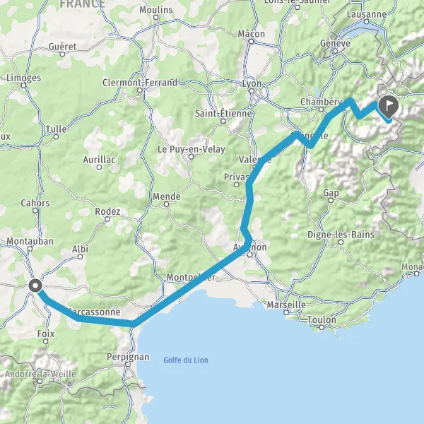 Prendre à droite et rejoindre A43 E70. Continuer sur 19 kilomètres