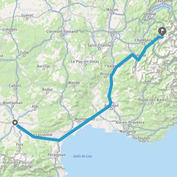 Prendre à droite et rejoindre A43 E70. Continuer sur 19 kilomètres