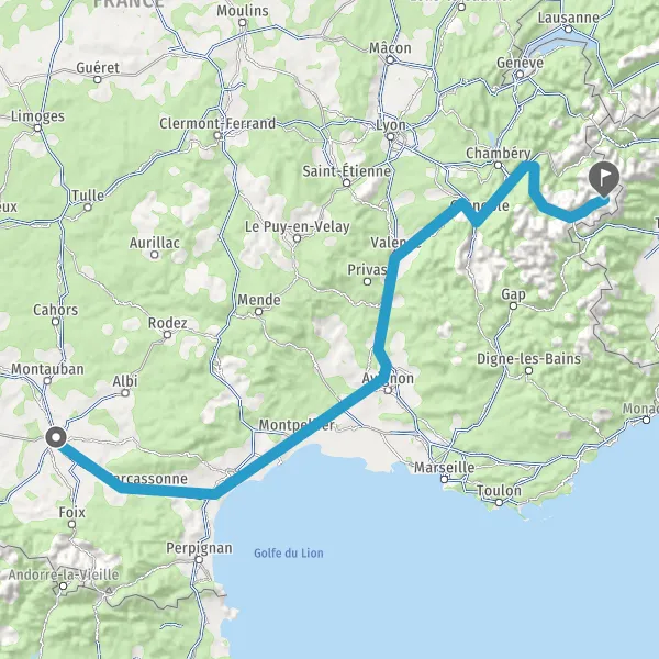 Prendre à droite et rejoindre A43 E70. Continuer sur 19 kilomètres