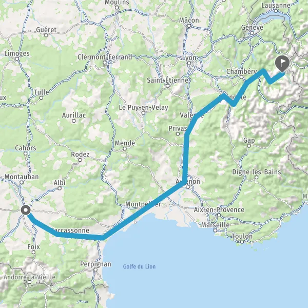 Prendre à droite et rejoindre A43 E70. Continuer sur 19 kilomètres