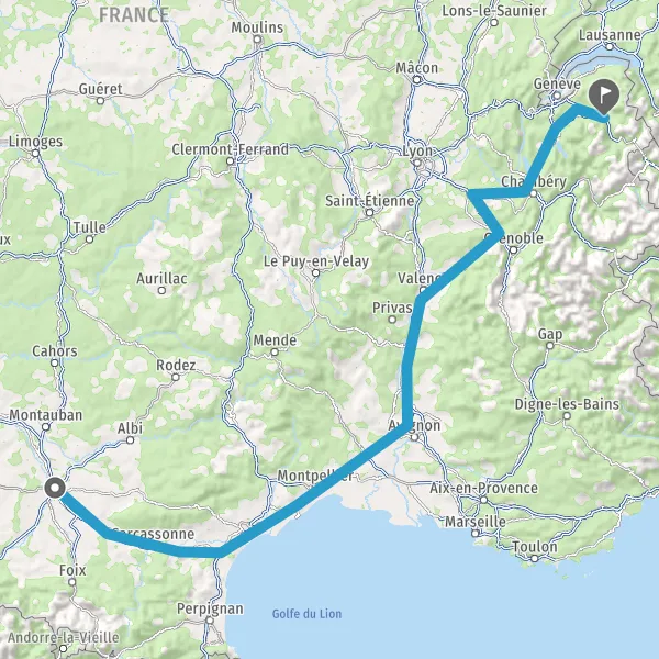 Prendre à droite et rejoindre A43 E70. Continuer sur 47 kilomètres