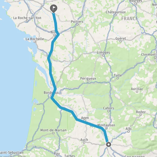 Prendre à droite et rejoindre A62. Continuer sur 33 kilomètres