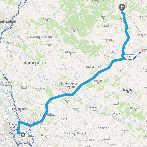 LavaurAlbiBergeracToulouse-CentreLa RoseraieJolimontParc d'Activités de Montaudran
